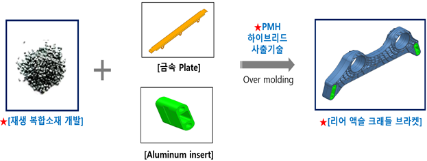ØNVH 성능개선 재생 플라스틱 복합소재 국산화 개발 및 PMH 이종소재 하이브리드 사출 기술이 적용된 리어 액슬 크래들 브라켓 제품 개발